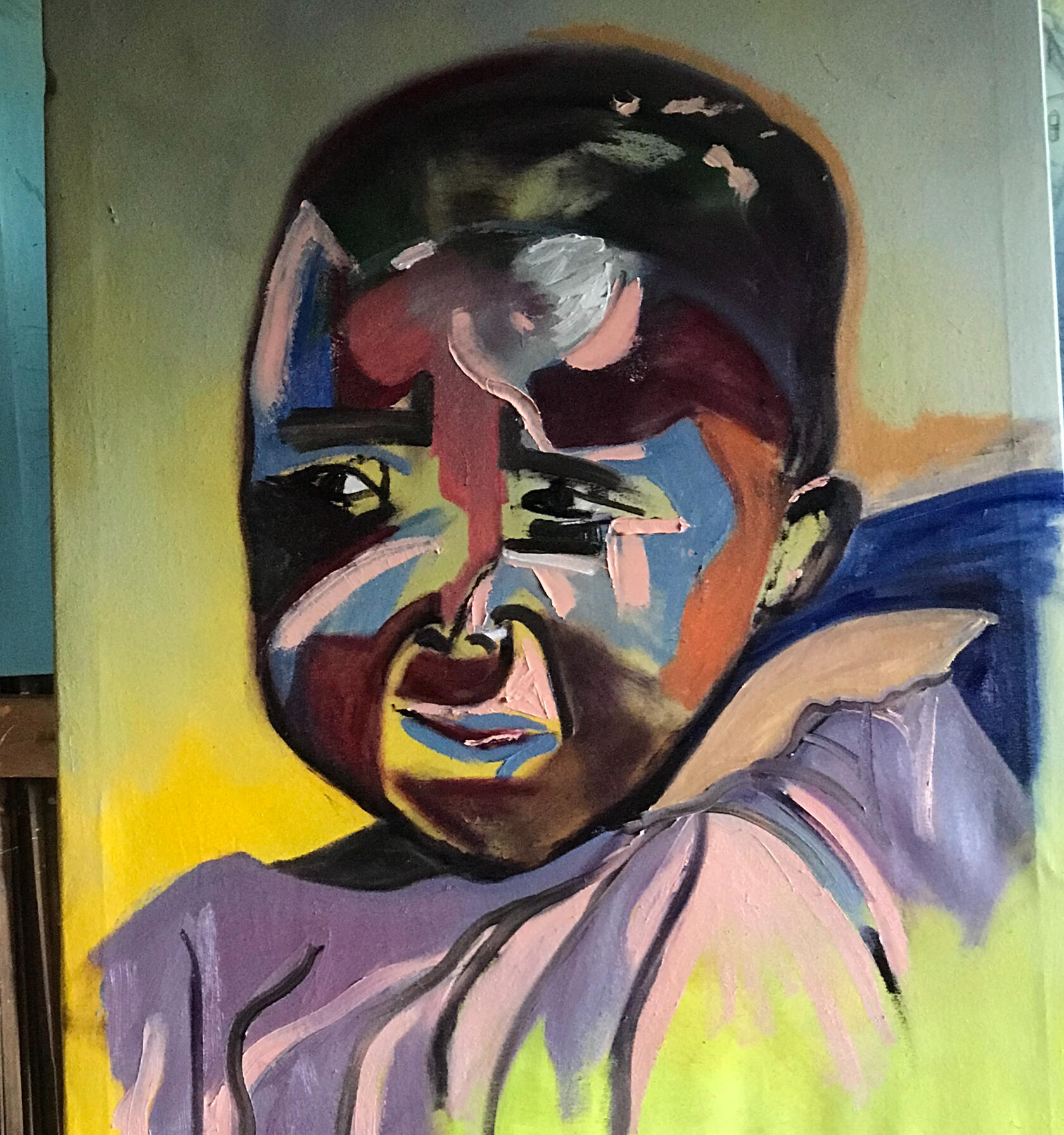 om sitt specialområde, och han menade att jag med mina målningar gör någon slags moderna ikoner.