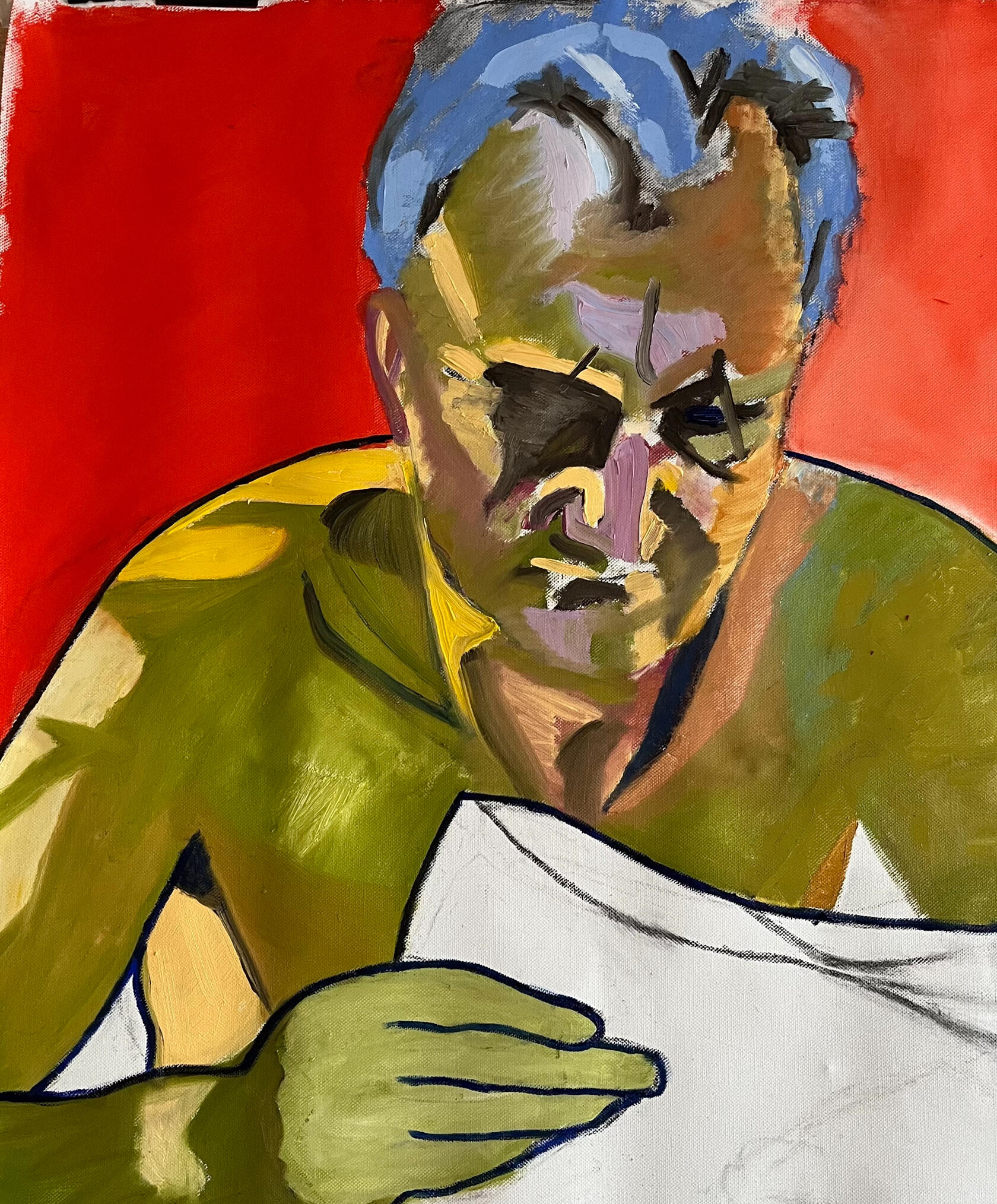 glad eftersom jag ofta tänker en text när jag målar, och ser en bild när jag skriver.